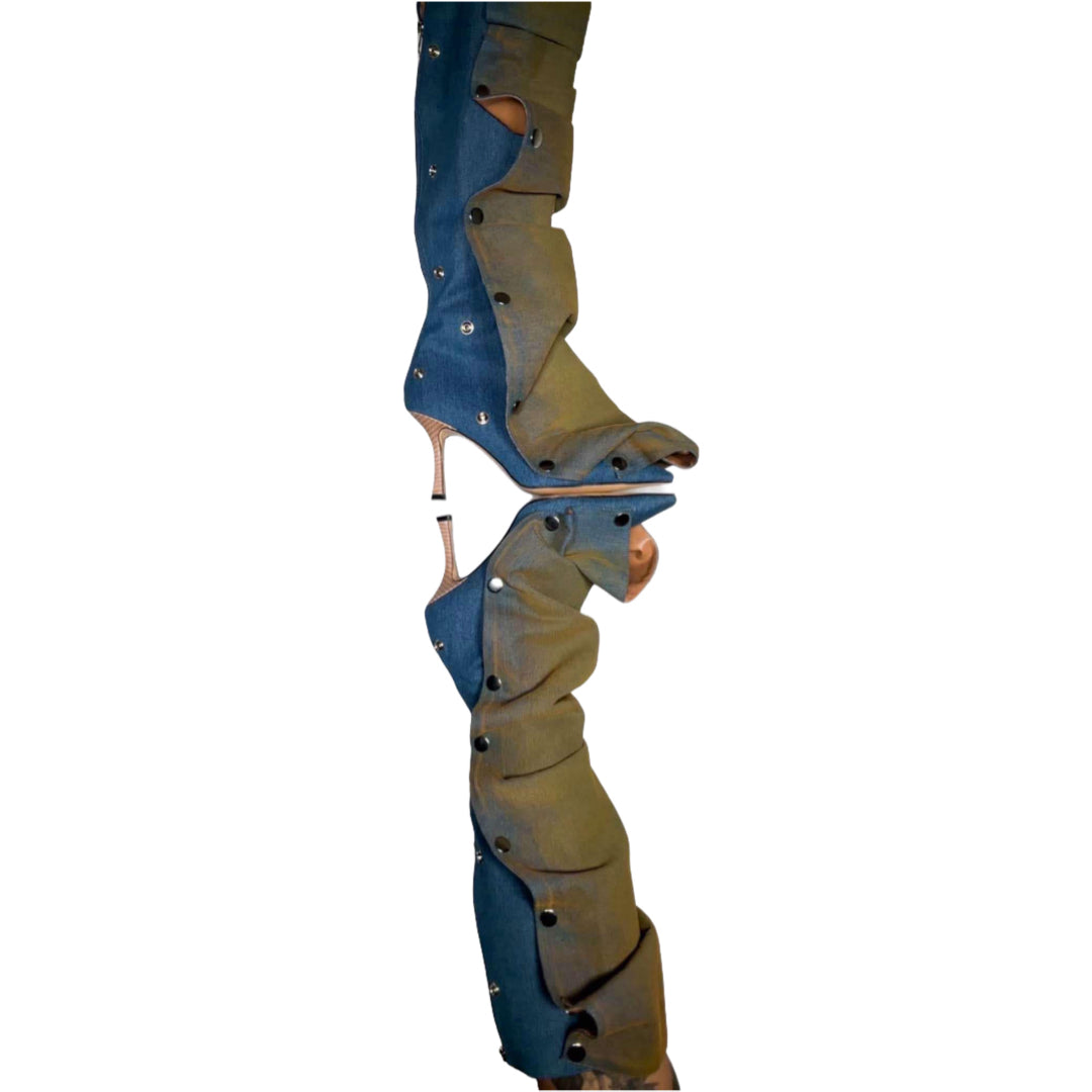 These Buckle Denim Boots are sold as a set with the buckle and boot included, making them perfect for any occasion.