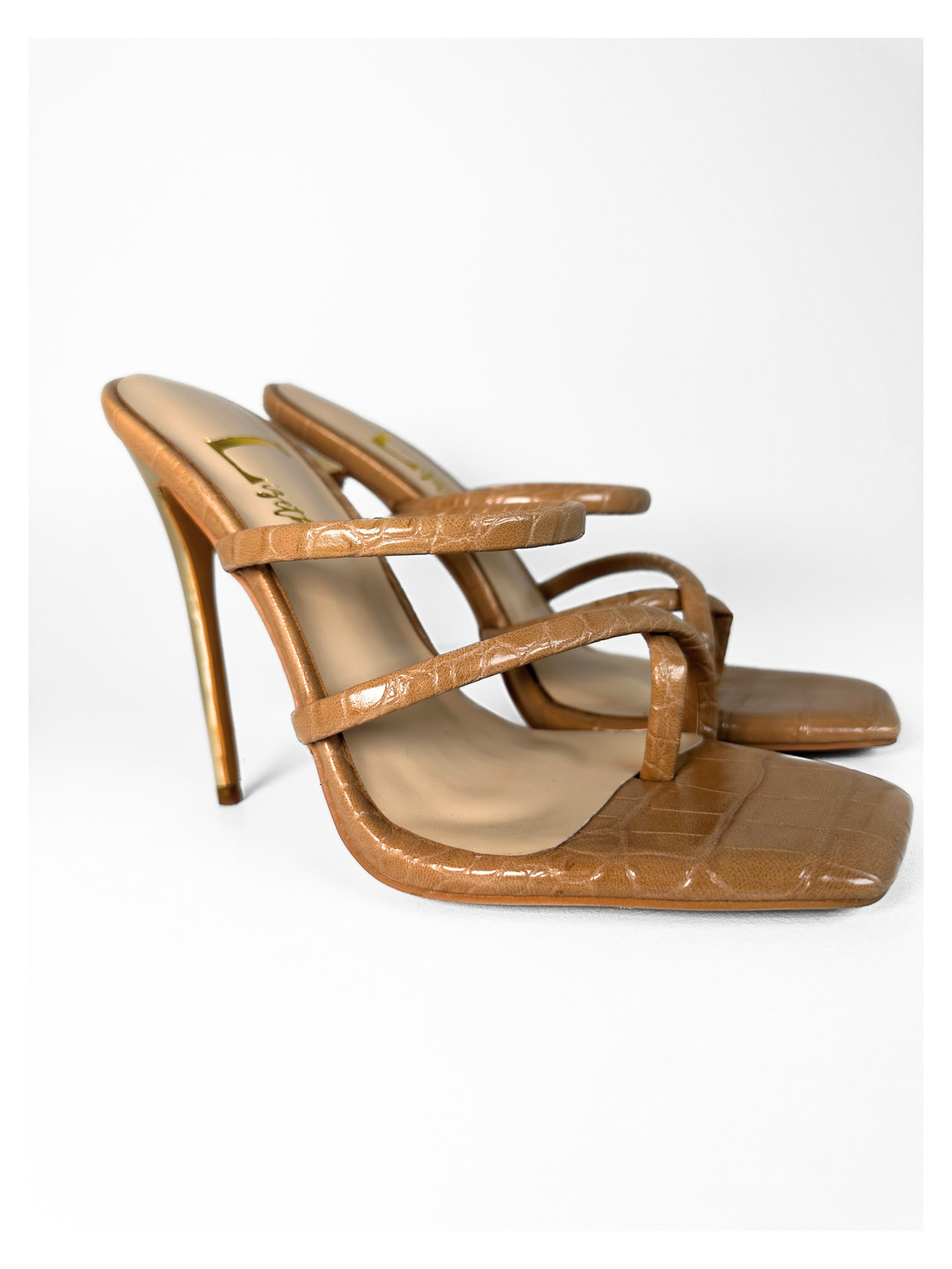 Introducing our Tan Sandal Heel - the perfect addition to your wardrobe! With a sleek 4 inch heel and timeless tan color, these heels are both stylish and versatile. Elevate any outfit and feel confident with every step. Trust us, your feet will thank you.